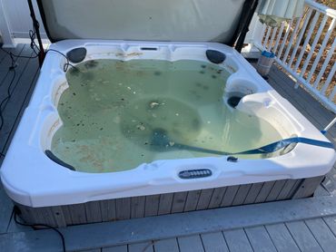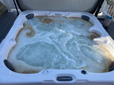 Your Hot Tub Requires annual purging of its lines. Over time your hot tubs pumps, plumbing and inner workings build up sludge from Scale, Tanning products, make up, lotions and more. If they are not cleaned properly yours may look like the above photo.